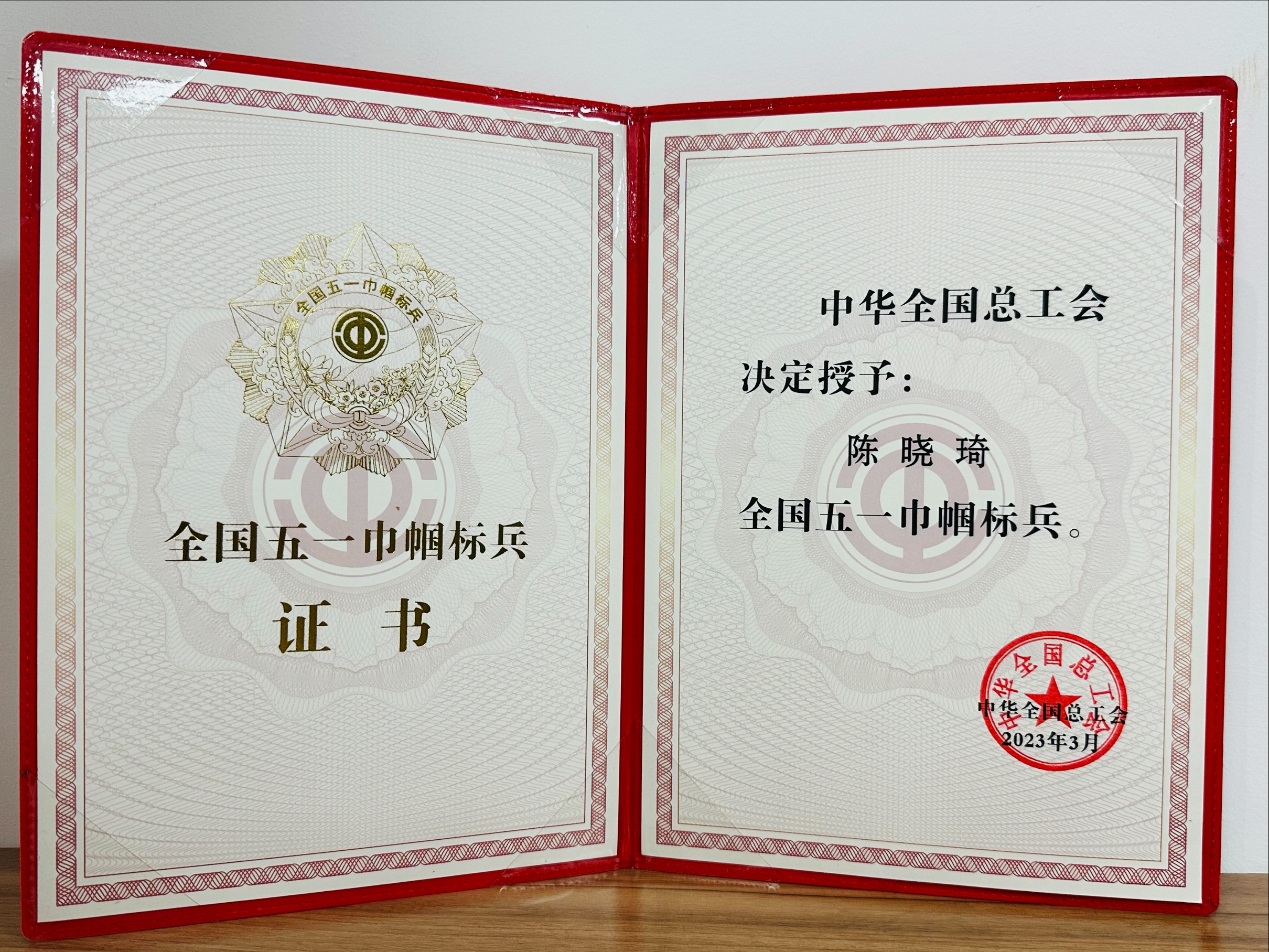 國(guó)家級(jí):全國(guó)五一巾幗標(biāo)兵-陳曉琦