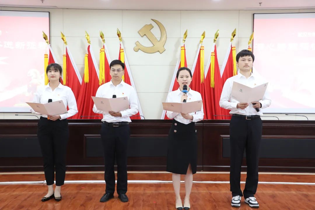 公司黨委委員、總經(jīng)理助理李茜同志帶領(lǐng)預(yù)備黨員進(jìn)行了入黨宣誓,鏗鏘有力的宣誓聲響徹大廳。會上還播放了此次公司黨委為慶祝建黨102周年而傾情創(chuàng)作的黨員重溫入黨誓詞短片《我宣誓》,現(xiàn)場氣氛莊嚴(yán)而熱烈,錚錚誓言在會場久久回蕩。