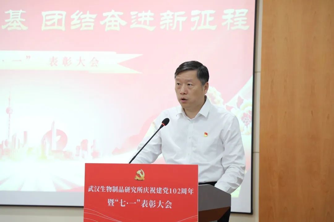 6月28日,中國生物武漢生物制品研究所召開慶祝中國共產(chǎn)黨成立102周年暨“七一”表彰大會,熱烈慶祝中國共產(chǎn)黨成立102周年,表彰公司各條戰(zhàn)線涌現(xiàn)出的先進(jìn)典型,進(jìn)一步激勵(lì)全體員工堅(jiān)定信心、敢為善為,形成和衷共濟(jì)、齊心協(xié)力推動公司發(fā)展的強(qiáng)大合力。會議由黨委副書記、總經(jīng)理段凱主持,公司黨政領(lǐng)導(dǎo)班子成員、中層管理人員、黨支部書記、黨員代表、分工會主席、團(tuán)委委員、民主黨派人士代表、毓晉公司代表等110余人參會。